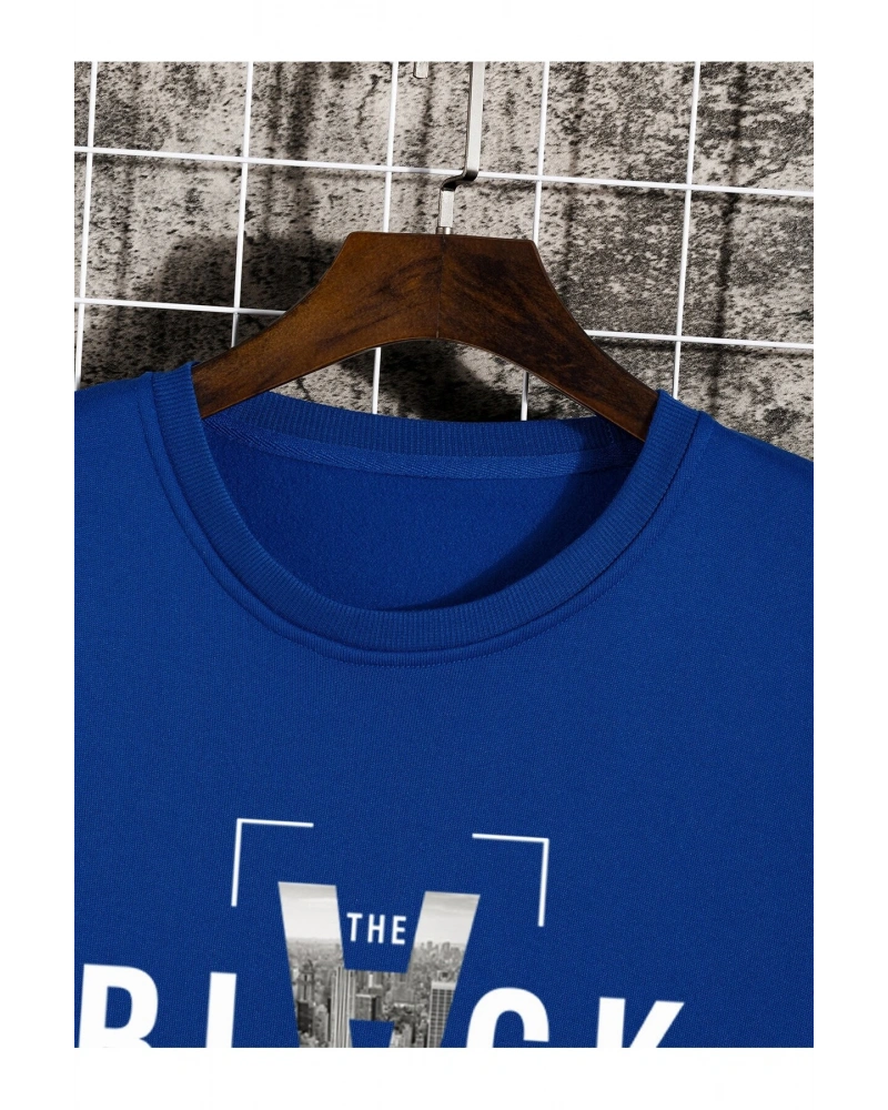Slogan & Building Print Pullover Sweatshirt MAVİRENK