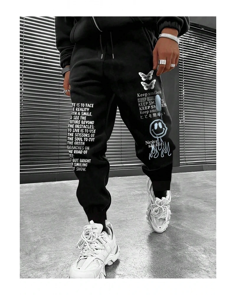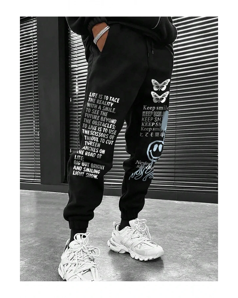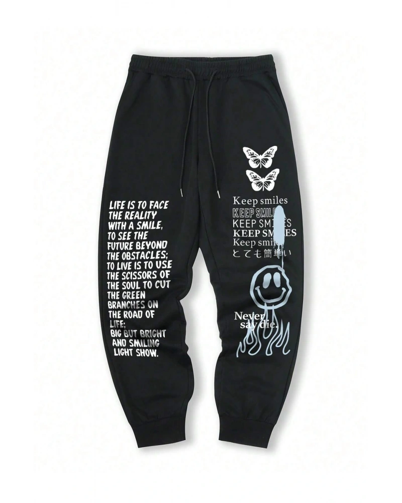 Cartoon Face & Slogan Graphic Drawstring Waist Eşofman Altı