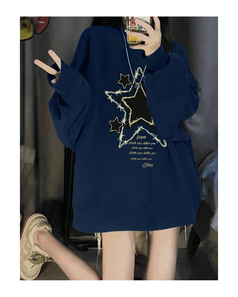Karikatür & Harf Grafik Düşük Omuz Oversize Sweat Lacivert