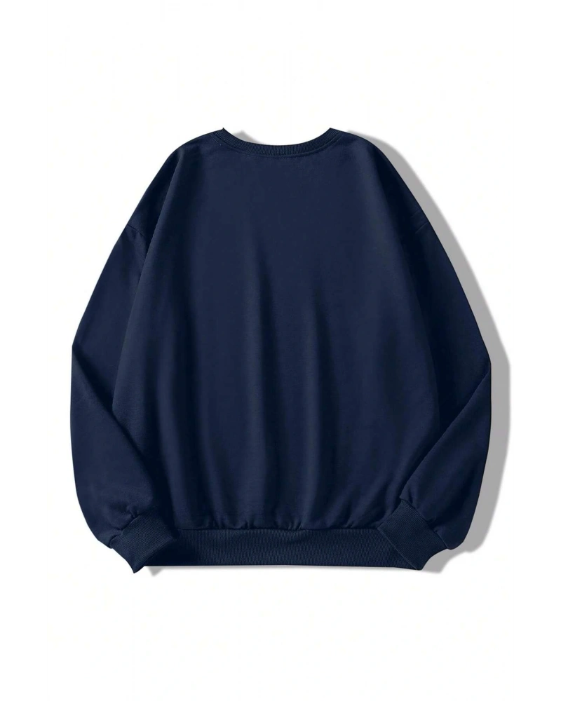 Slogan Grafikli Düşük Omuz Oversize Sweat Lacivert