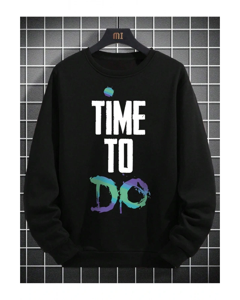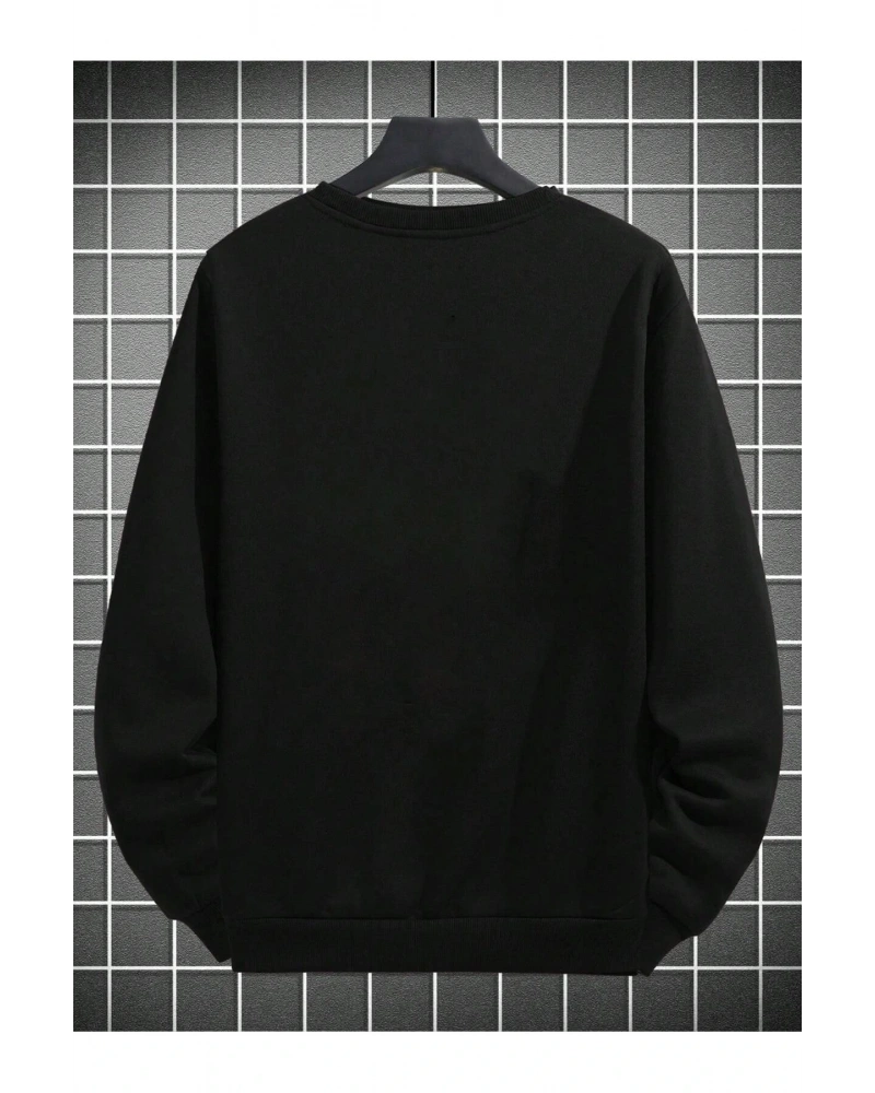 Siyah Yakasız Tüy Baskılı Unisex Sweatshirt