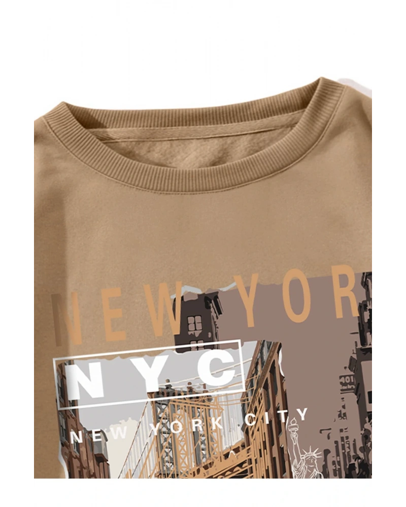 Los Angeles baskılı Üç İplik ünisex oversize Sweatshirt Füme