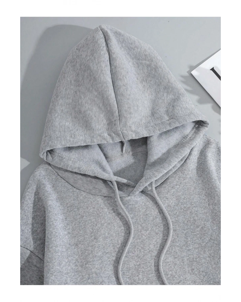 Yasolin----Kadın Gri New Rochelle Baskılı Kapüşonlu Oversize Sweatshirt