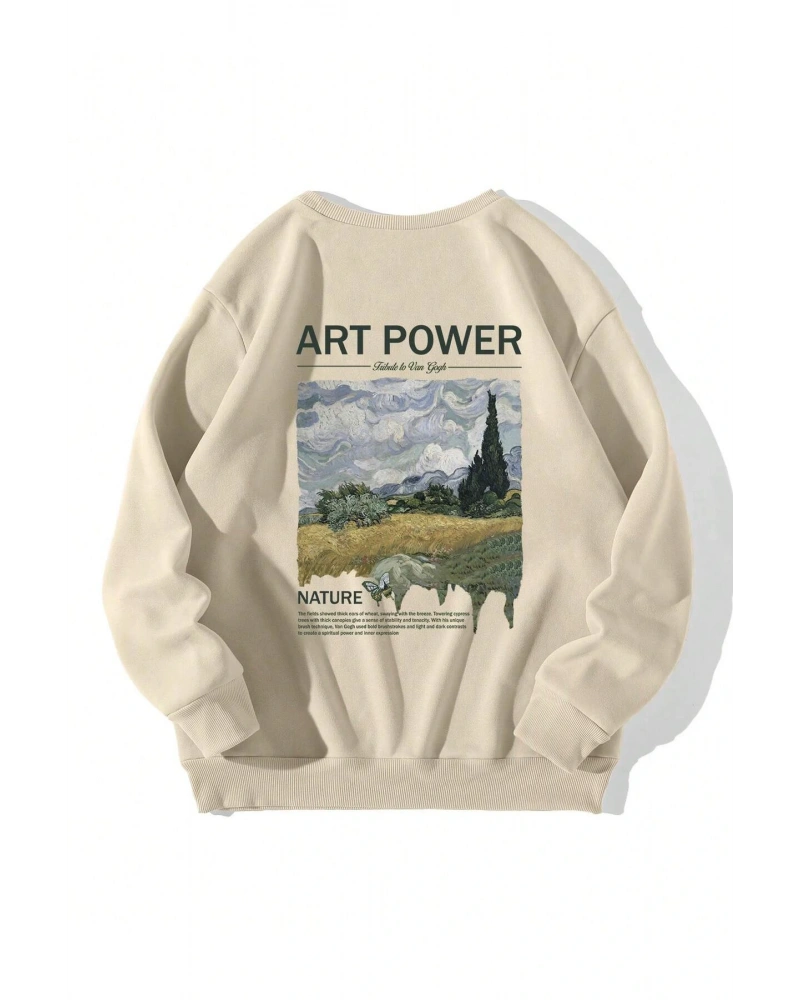 Sloganlı ve Dağ Baskılı Sweatshirt Bej