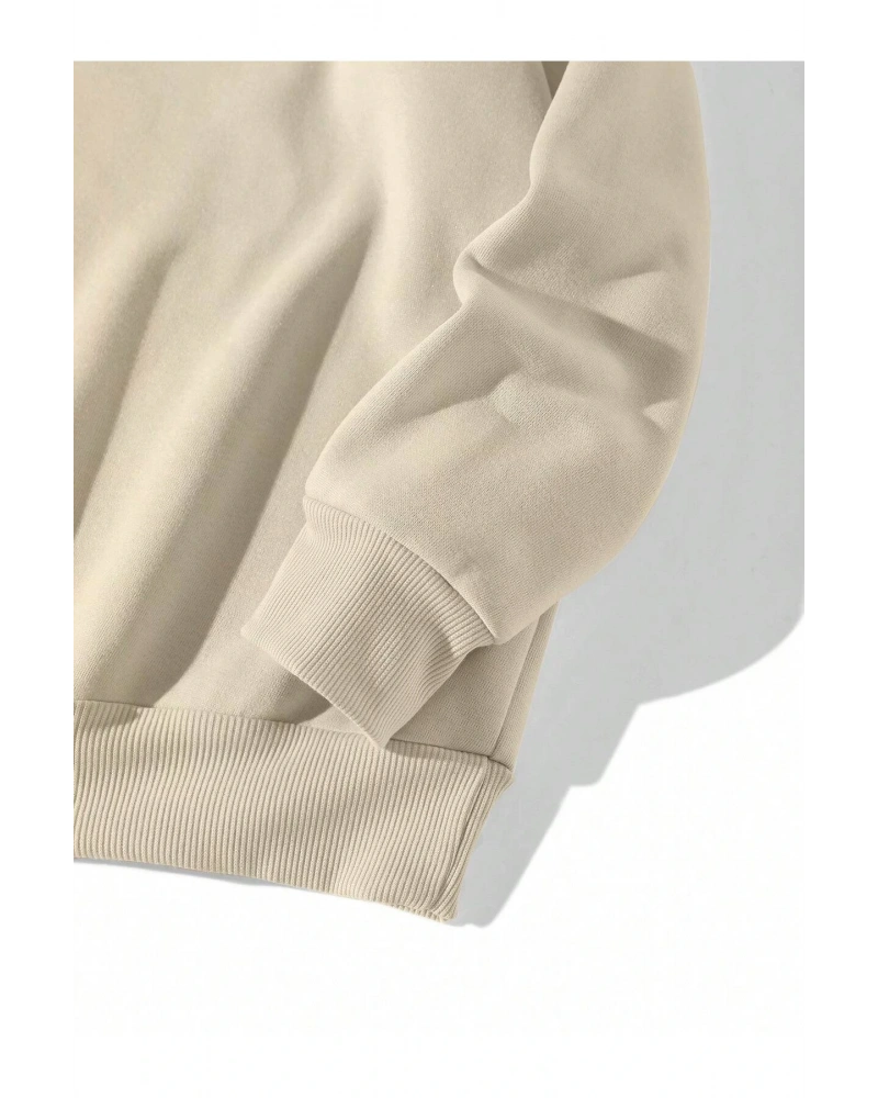 Sloganlı ve Yıldız Desenli Düşük Omuzlu Oversize Sweat Bej