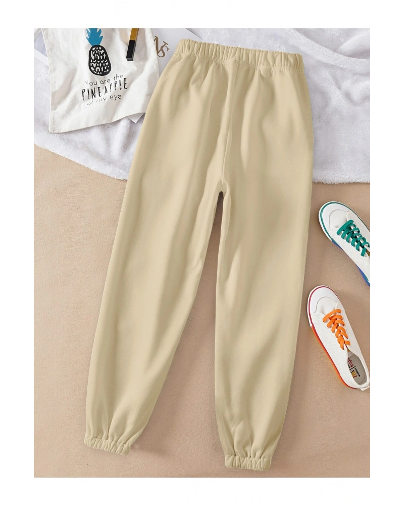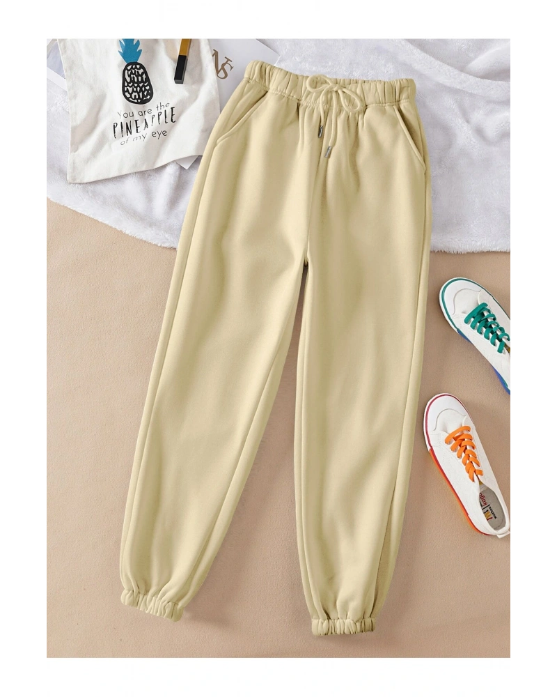 Solid Drawstring Waist 4 Mevsim Eşofman