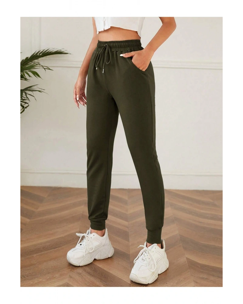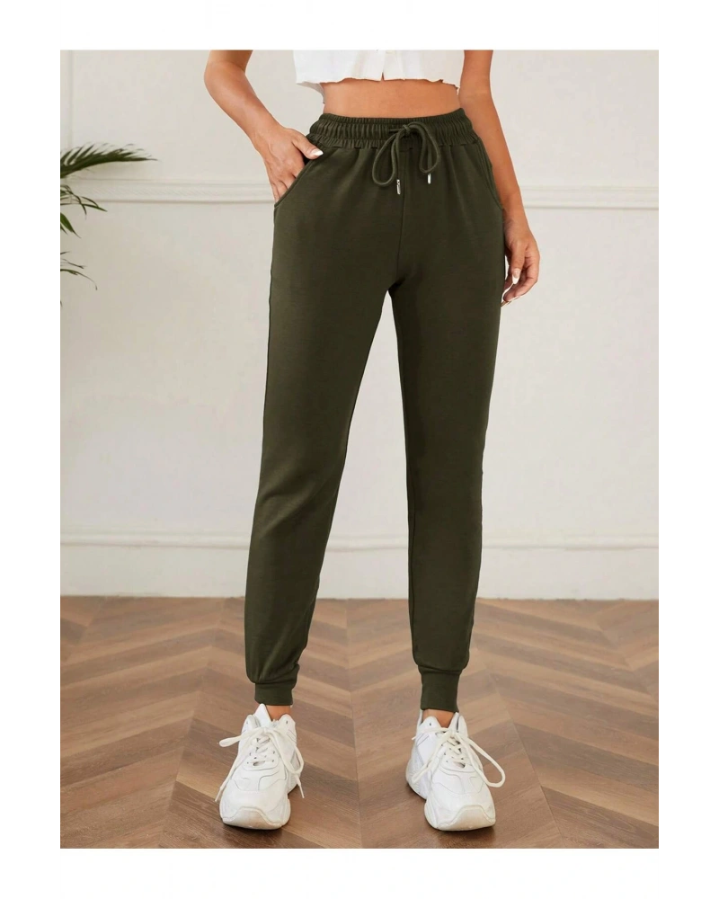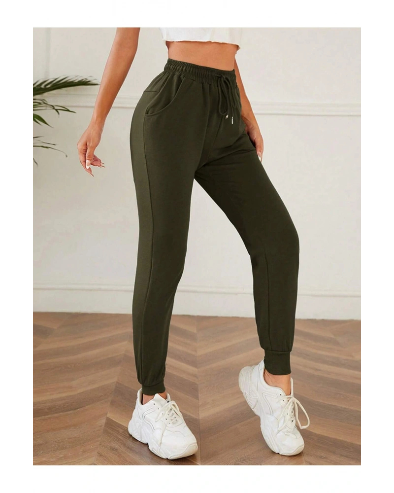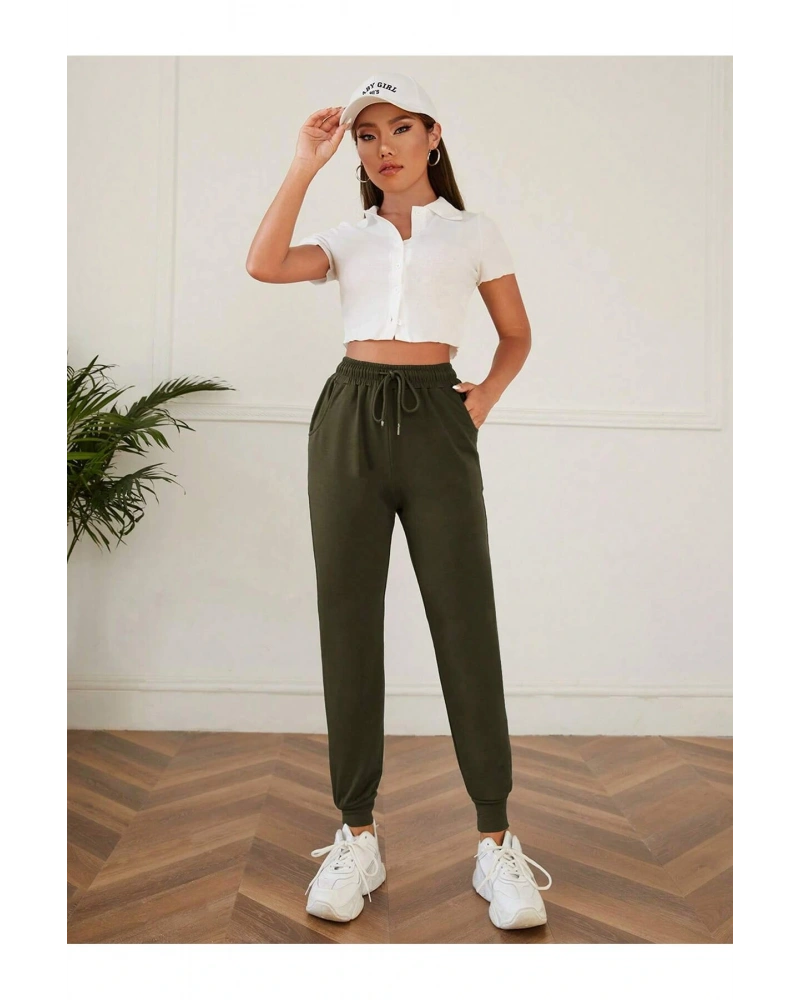 Solid Drawstring Waist Slant Pocket 4 Mevsim Eşofman