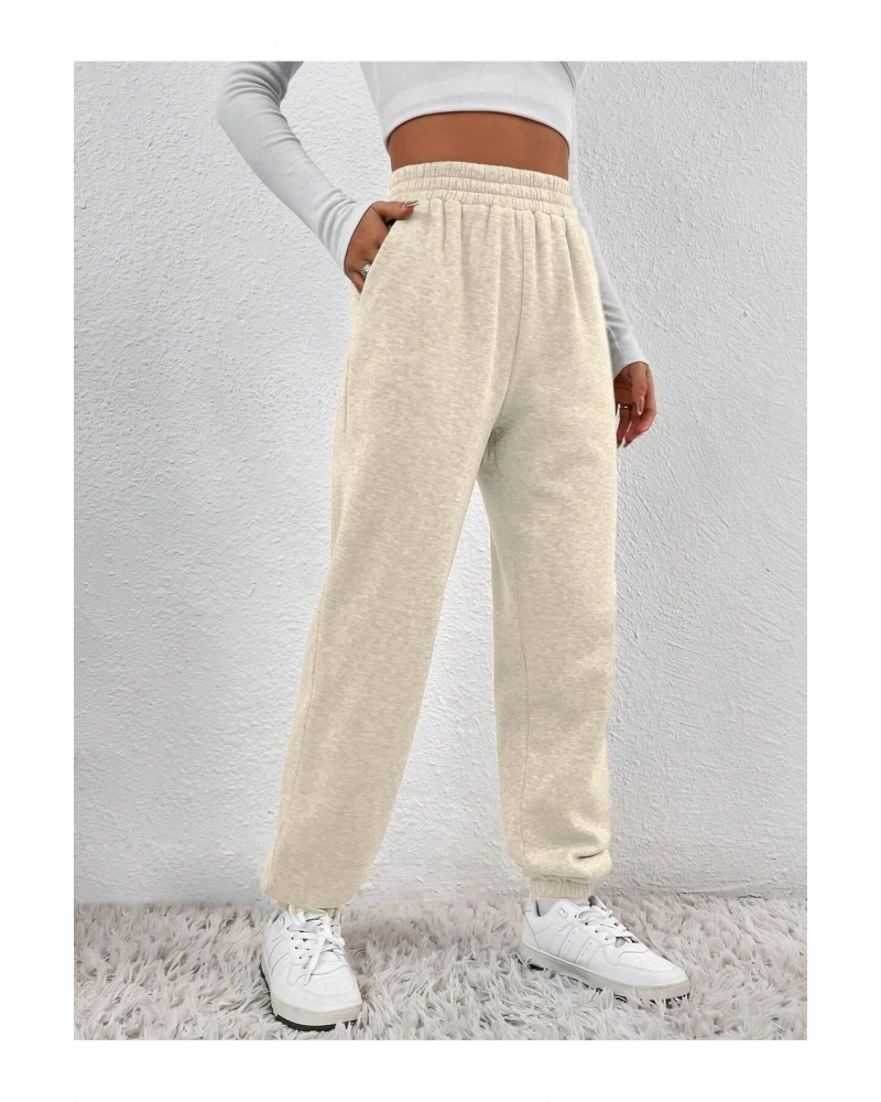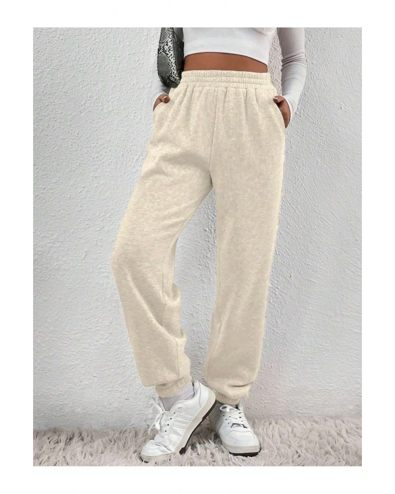 Solid Slant Pocket Elastic Waist 4 Mevsim Eşofman
