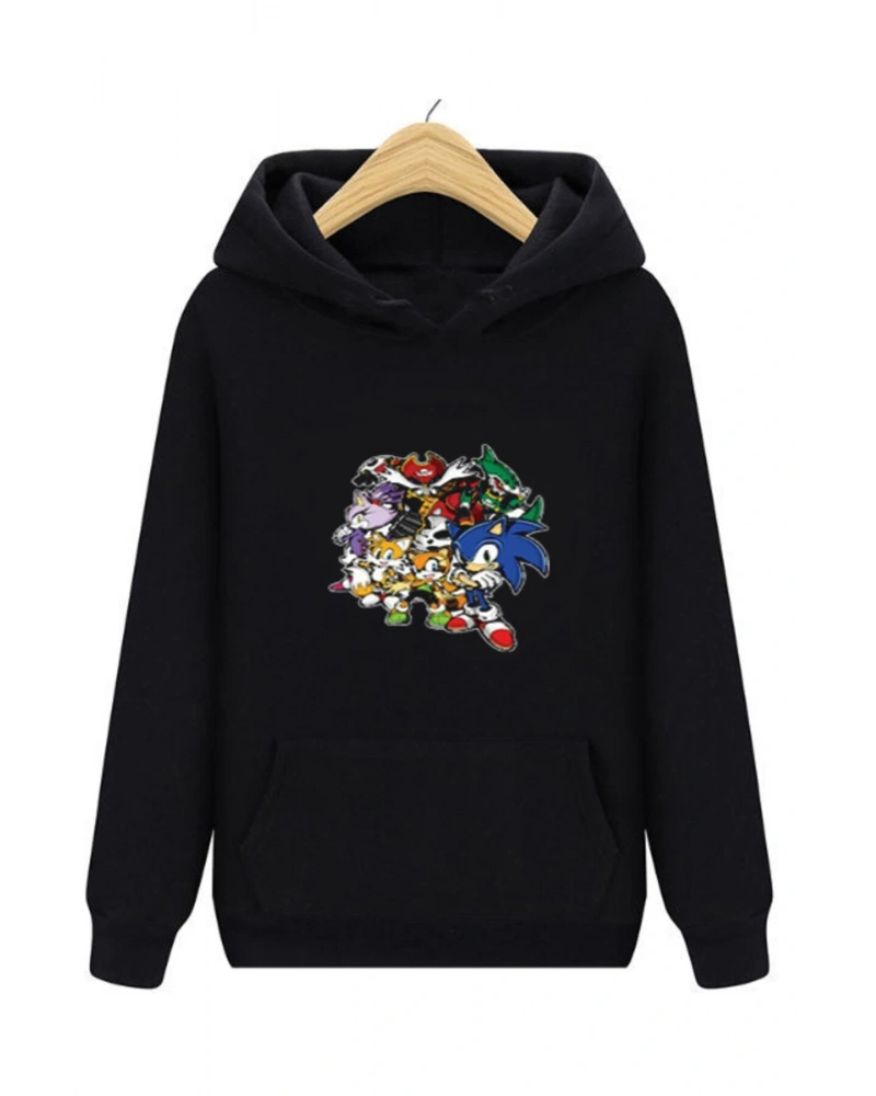 Sonic Siyah Unisex Kapşonlu Sweatshirt Sonıc Karakterler 00424