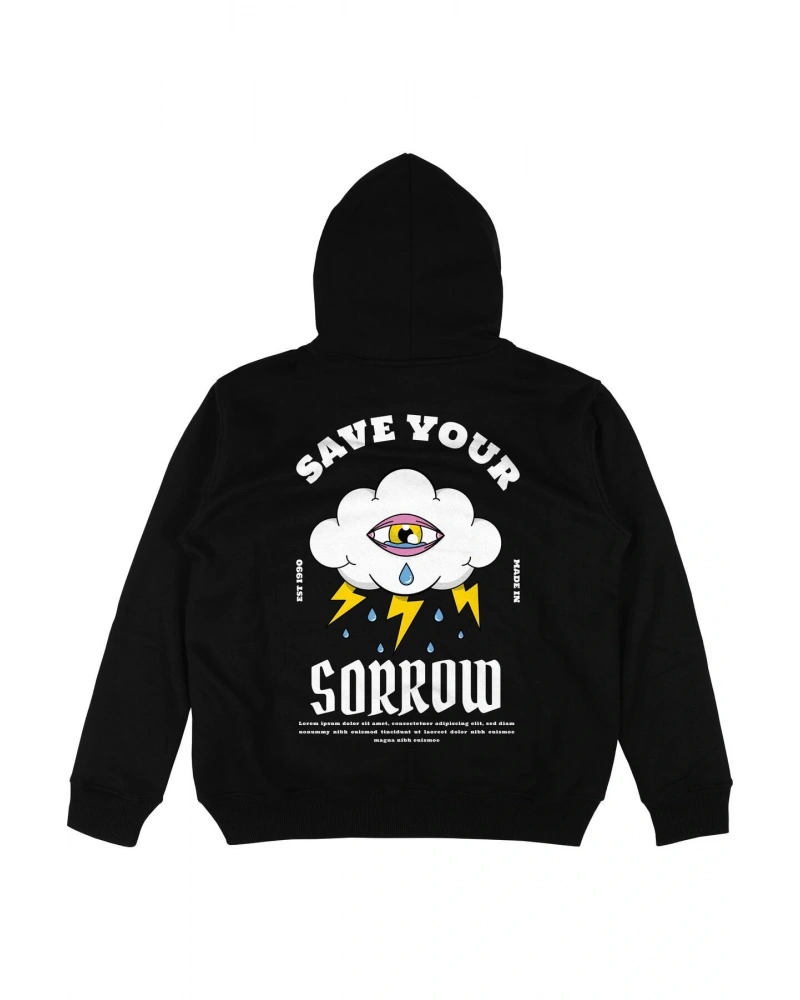 Sorrow Siyah Oversize Unisex Kapüşonlu Sweatshirt Hoodie
