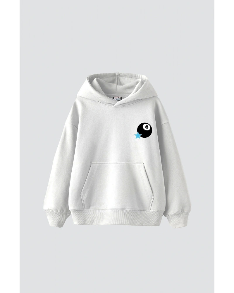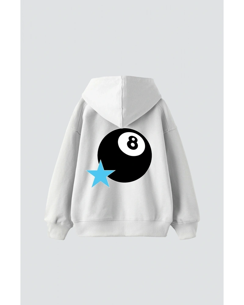 Star Eight Ball Baskılı Oversize Unisex Beyaz