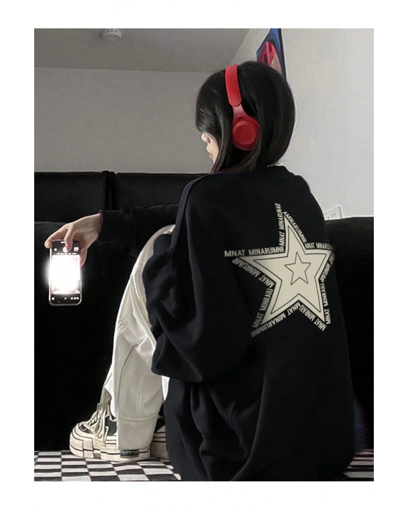 Star Pattern Drop Shoulder Oversized Pullover Siyah