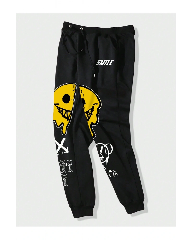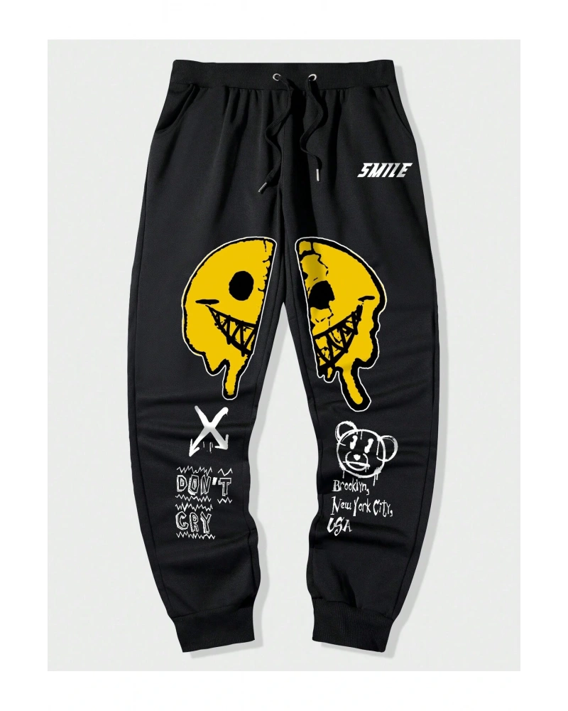 Cartoon Face & Slogan Graphic Drawstring Waist Eşofman Altı