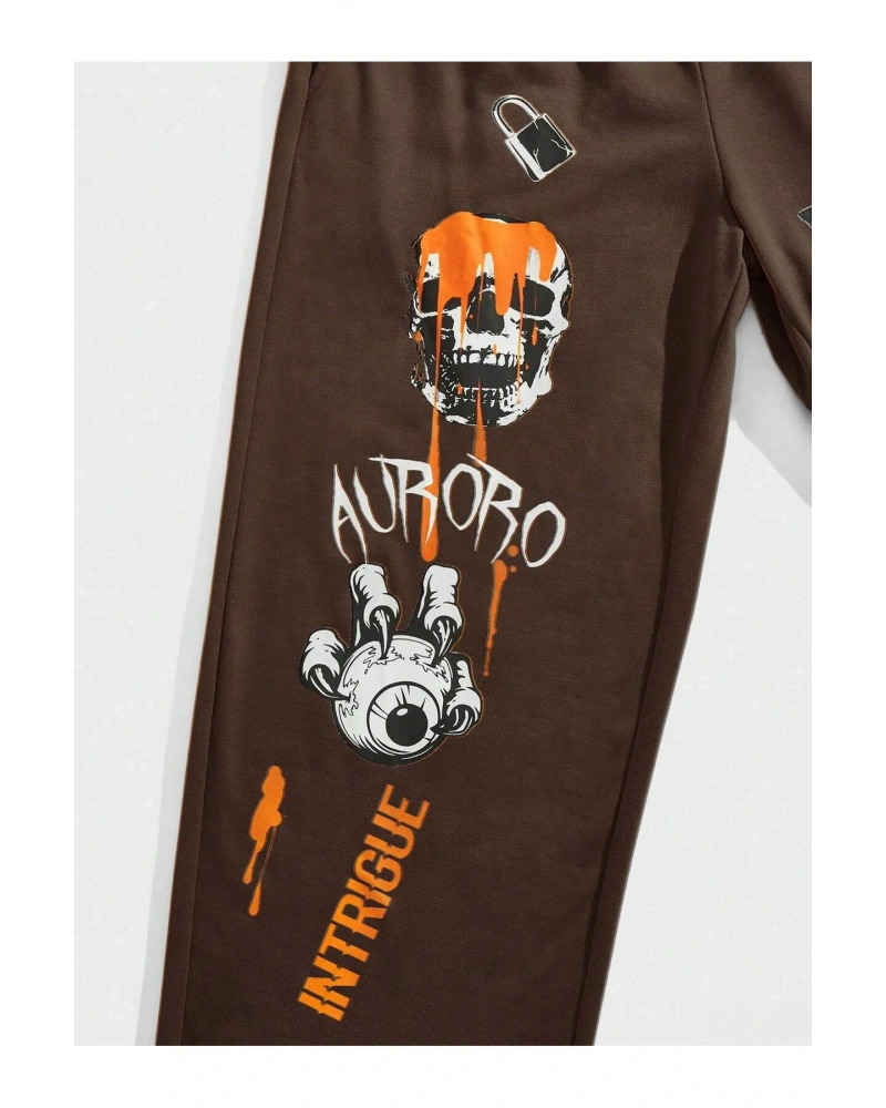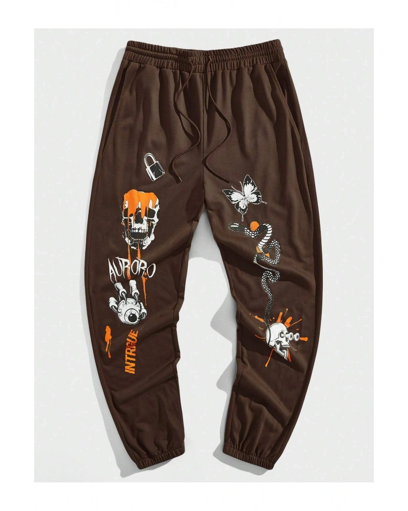 Street Life Guys Letter & Skull Print Drawstring Waist Eşofman Altı