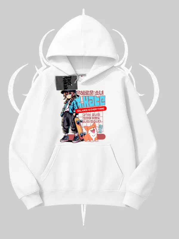 Kapşonlu Sweatshirt Anime Hiker Girl Balance Is Everything Baskılı