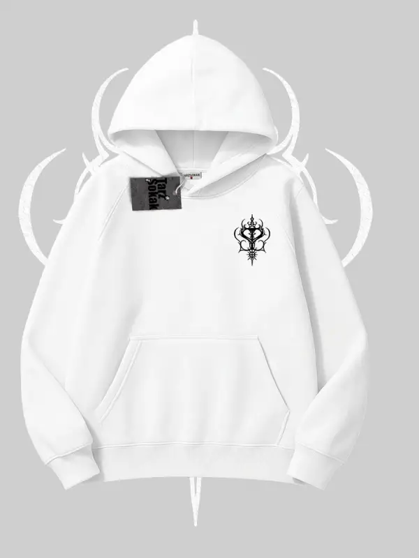 Beyaz Kapşonlu Sweatshirt Vampir Dış