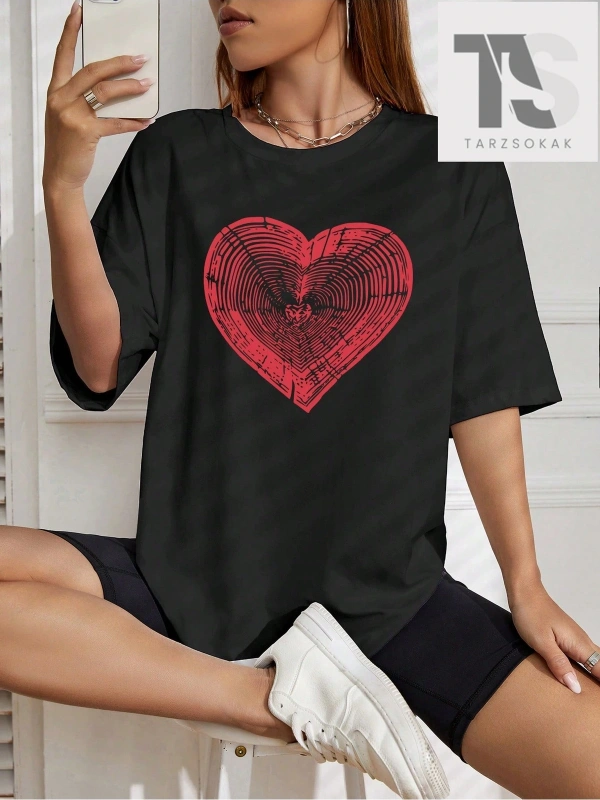Yıldız Grafikli Yuvarlak Yaka Kısa Kollu Tişört
