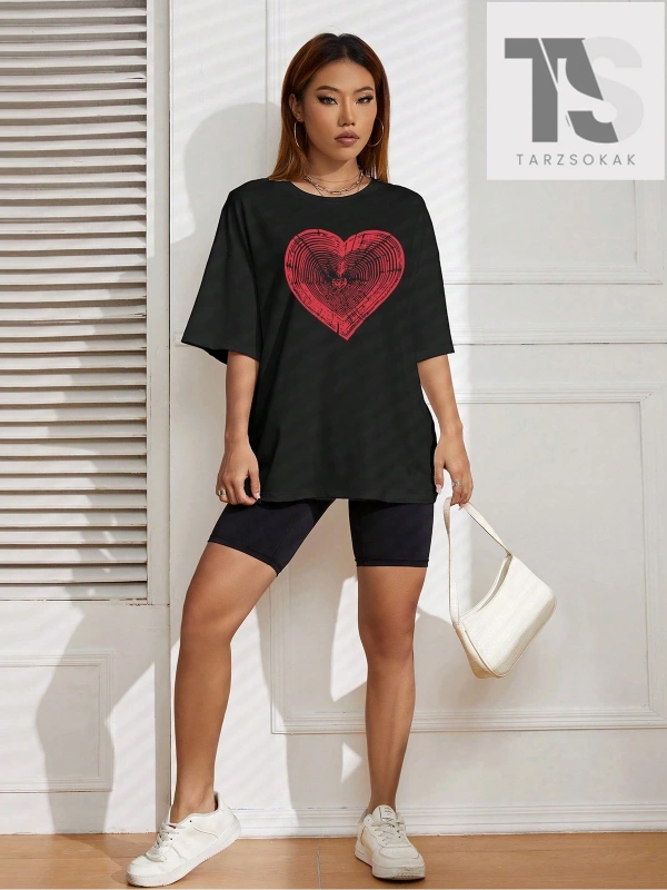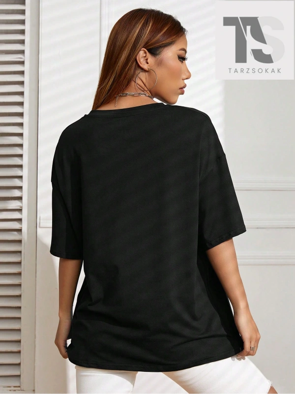 HELLFUNCO Güneş ve Slogan Grafikli Düşük Omuz Oversize Tişört