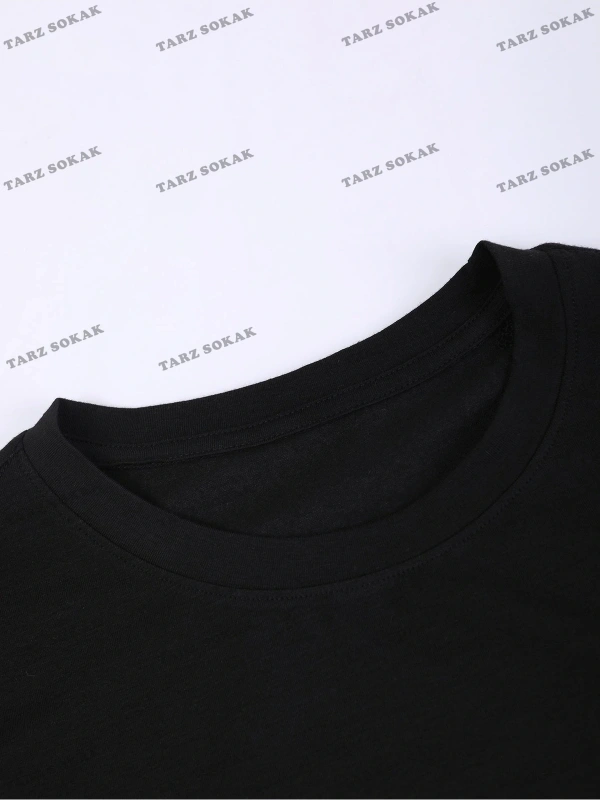Unisex Bisiklet Yaka Slogan Baskılı Siyah Tişört Ve Siyah Eşofman Altı 2'li Set A