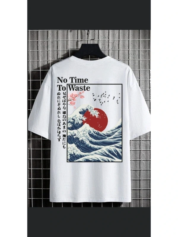 Erkek Beyaz No Time Oversize Bisiklet Yaka Tshirt