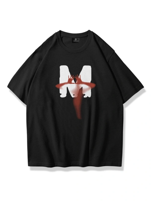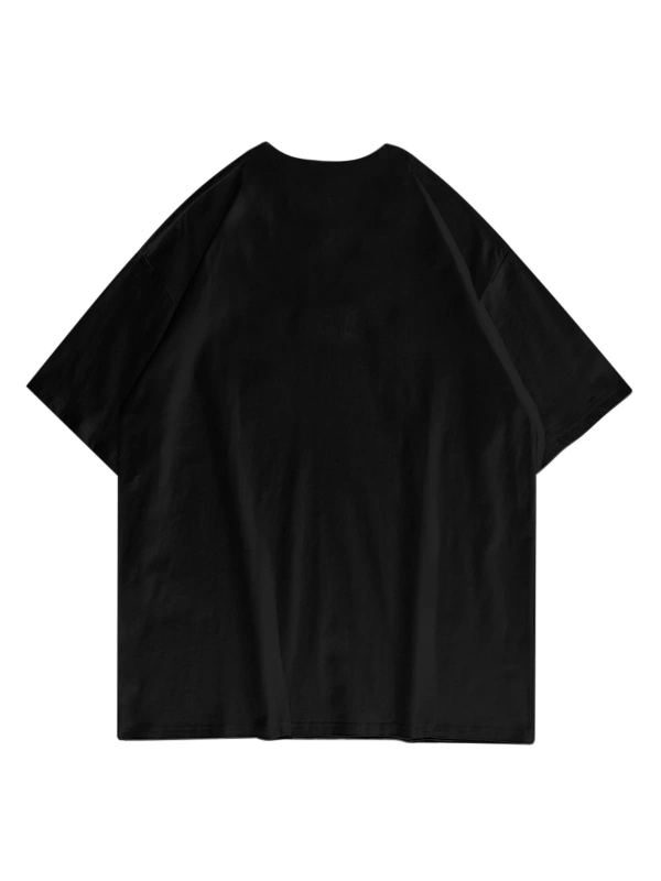 Erkek Siyah Heavy Rock Baskılı Oversize Bisiklet Yaka Tshirt