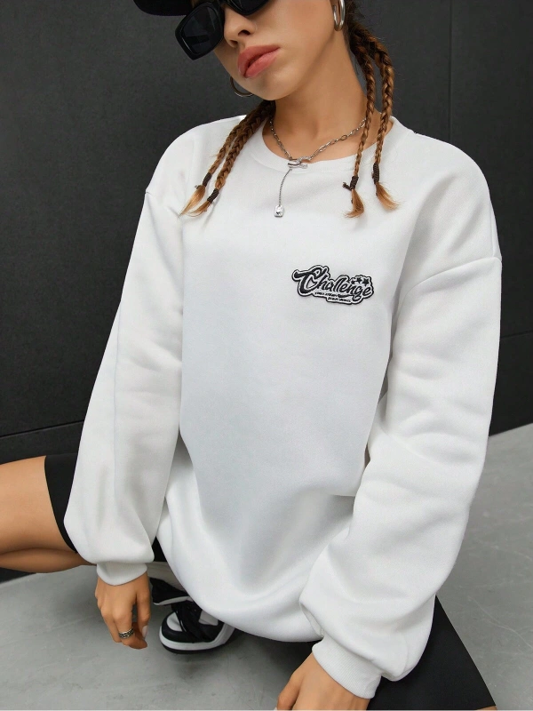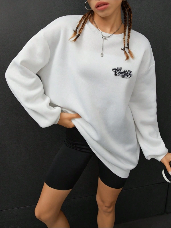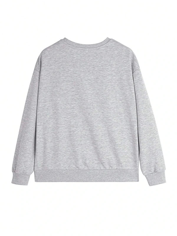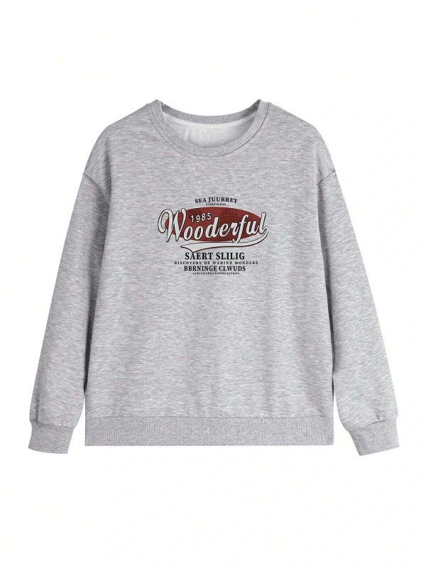 Harfli Grafik Düşük Omuz Oversize Sweat Gri