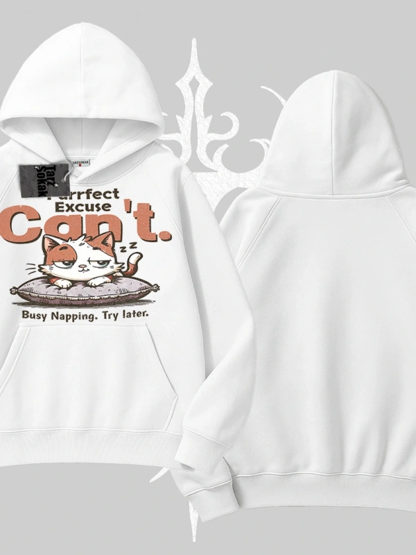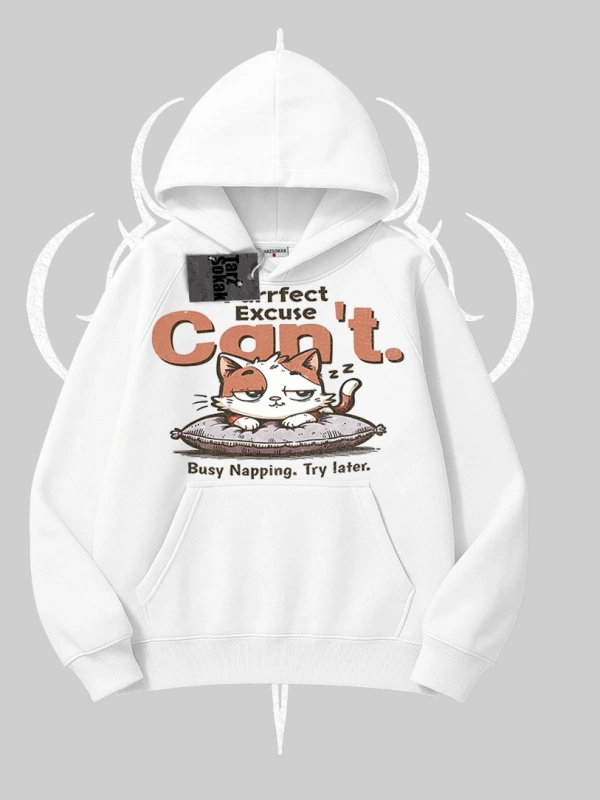 Kedi Baskılı Cant Busy Napping Y2K Kapşonlu Sweatshirt