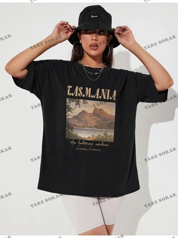 Kadın Siyah Tasmania Baskılı Oversize