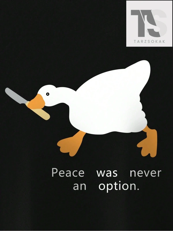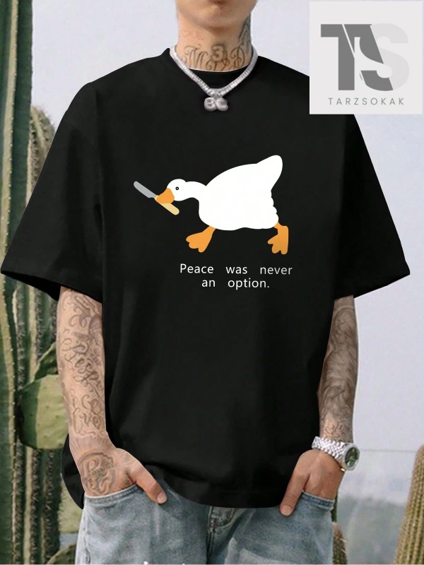 Erkek Karikatür Ördek Baskılı Yuvarlak Yaka Sloganlı Tişört