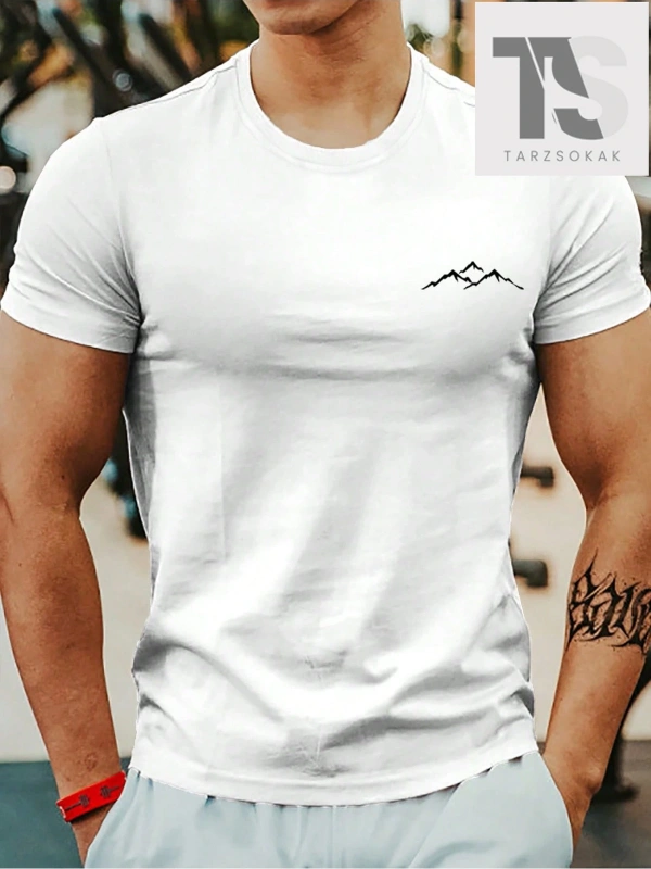Homme Erkek Dağ Desenli Tişört