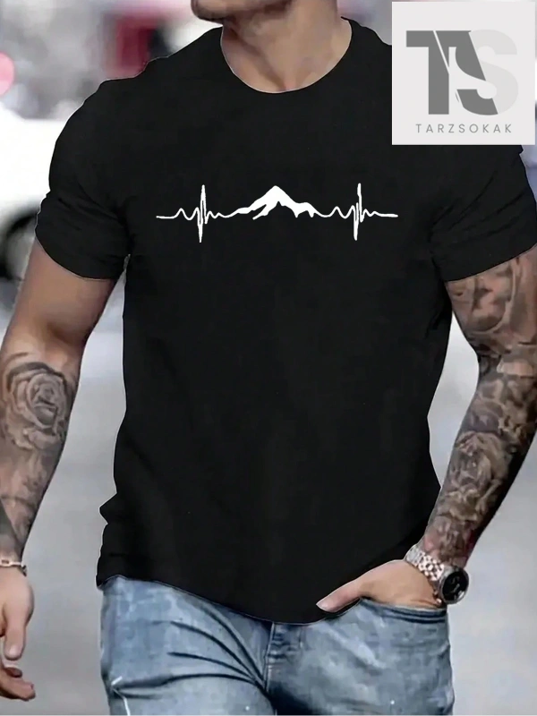 Homme Erkek Dağ ve Gezegen Baskılı Tişört