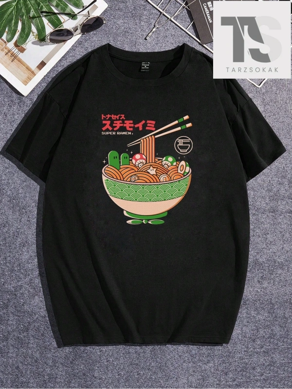 Eoli Studio Erkek Japon Harfli ve Karikatür Grafikli Tişört