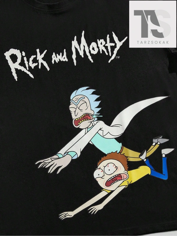 Erkek Sloganlı ve Karikatür Grafikli Tişört