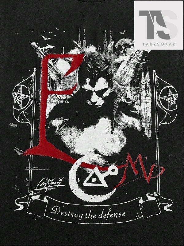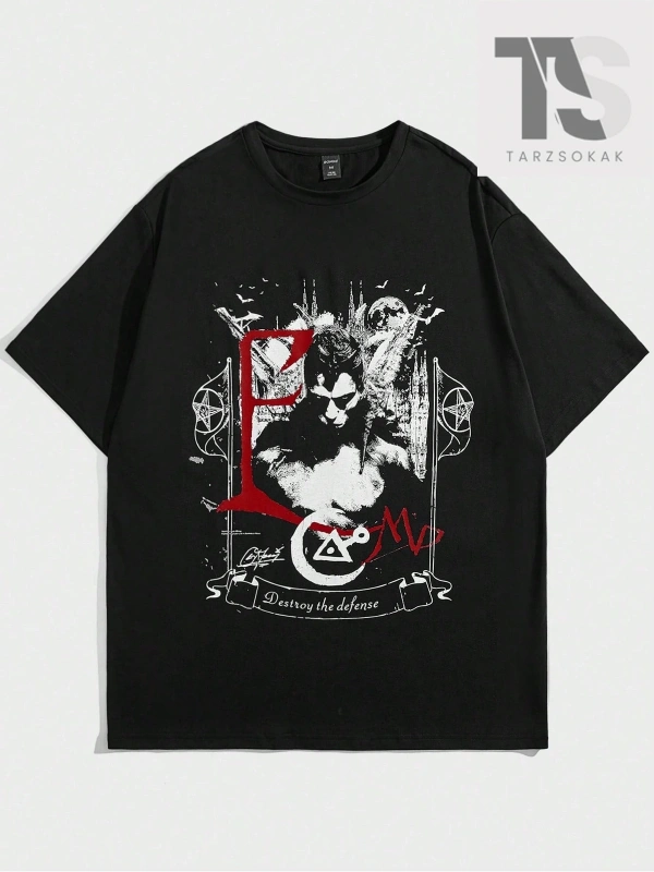 Goth Erkek Figürlü ve Harfli Grafik Tişört