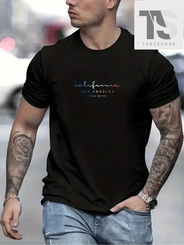 Erkek Slogan Baskılı Yuvarlak Yaka Tişört