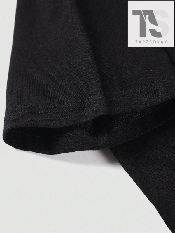 Hypemode Erkek Siyah Örme Yuvarlak Yaka Kısa Kollu Yazılı Tişört