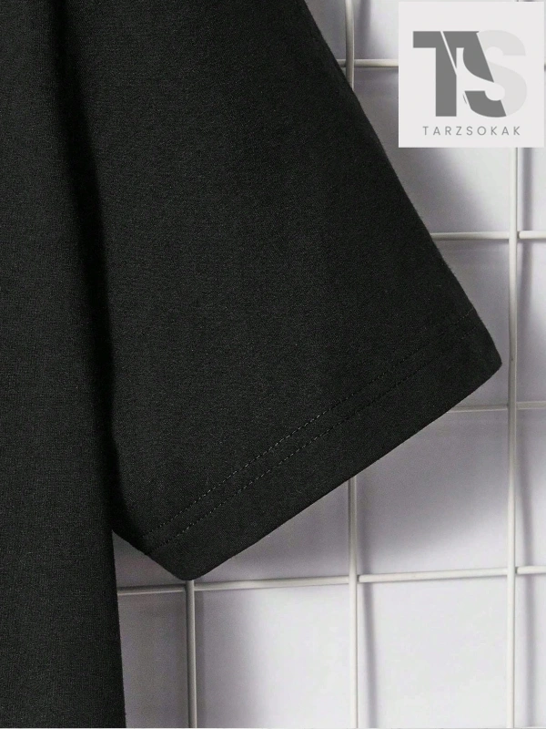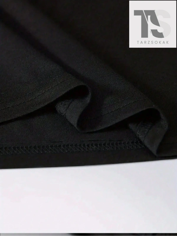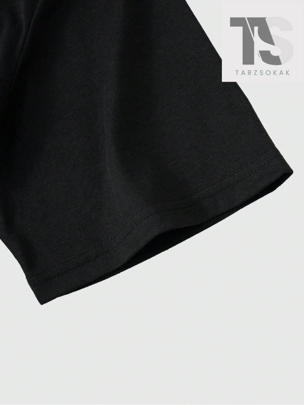 Homme Erkek Siyah Örme Yuvarlak Yaka Kısa Kollu Tişört