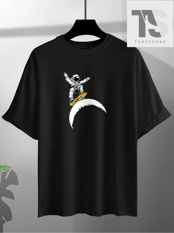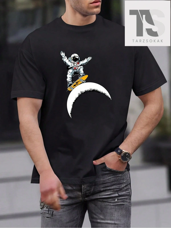 Street Life Erkek Astronot Yazılı Baskılı T-Shirt