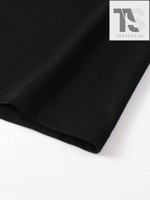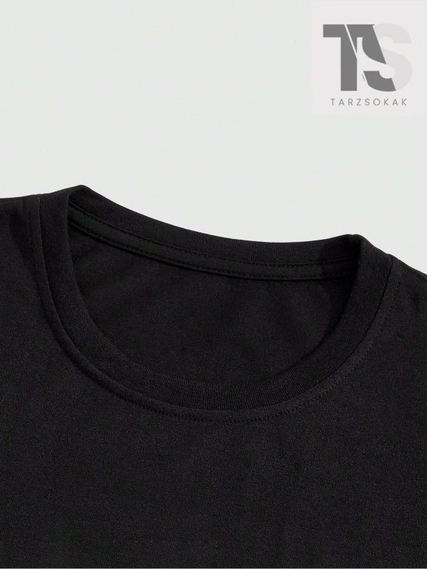 Siyah Örme Erkek Yuvarlak Yaka Düşük Omuz Tişört