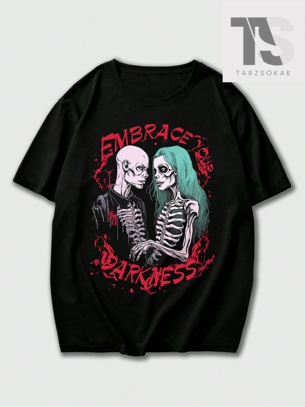 Anime Erkek Kafatası Baskılı T-shirt