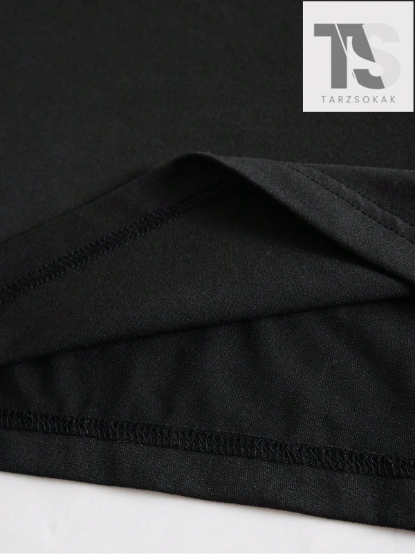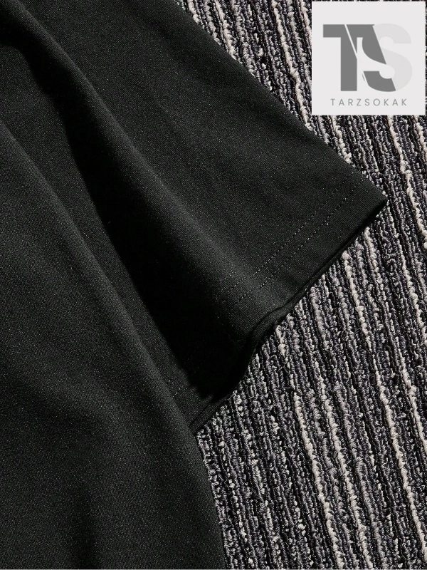 Siyah Örme Ejderha Desenli Yuvarlak Yaka Bol Tişört