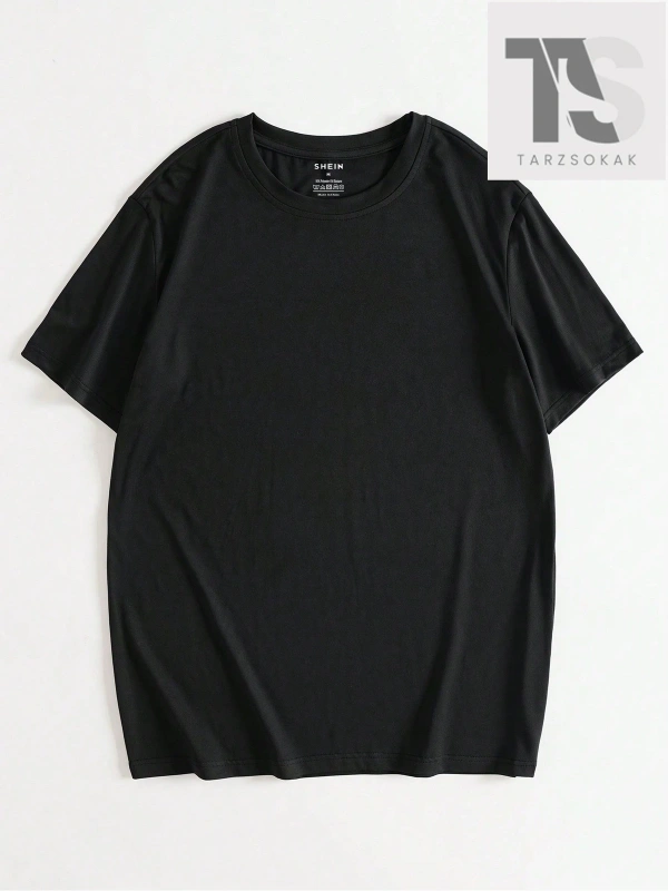 Siyah Örme Bisiklet Yaka Kısa Kollu Erkek Tişört