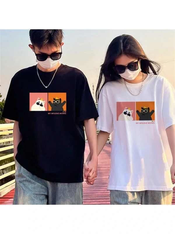 2 Adet Tir Çift Sevgili Tom And Jerry Cartoons Unisex Siyah T-shirt Siyah T-shirt