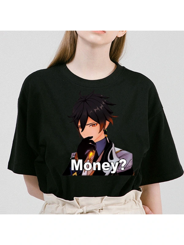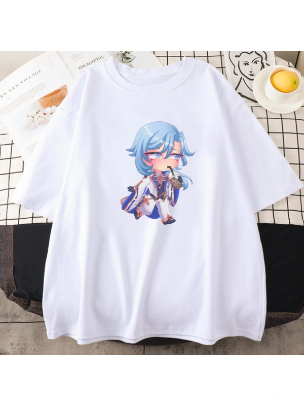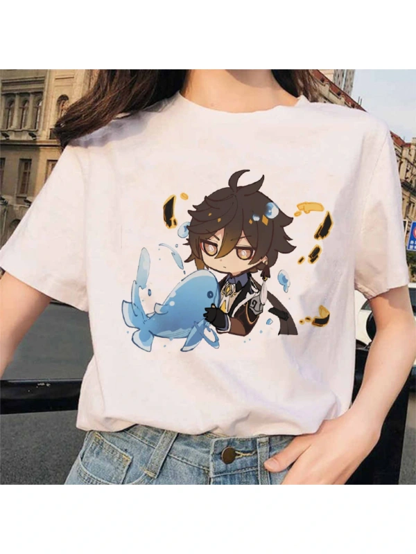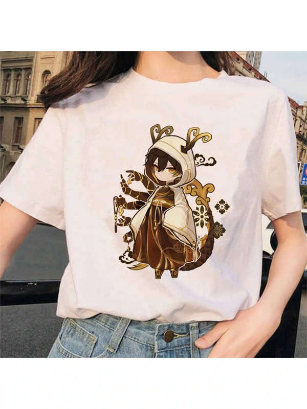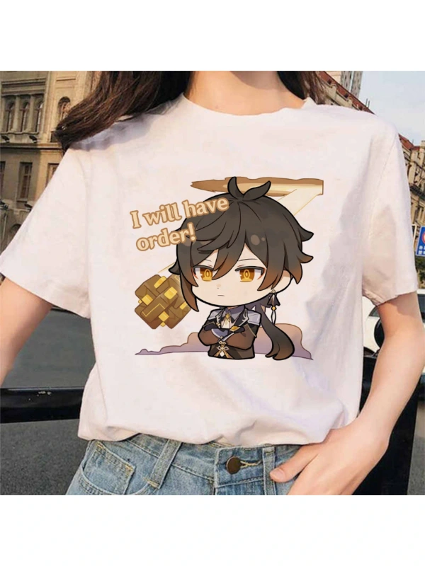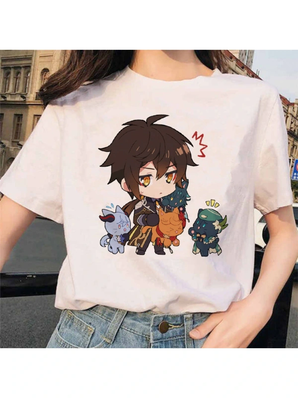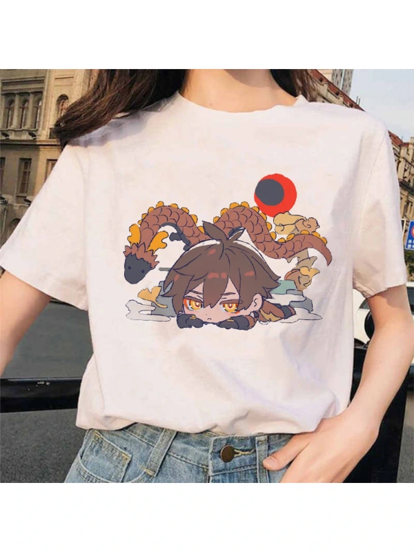 Beyaz Genshin Darbe Zhong Li Morax Tees Kısa Sleeve100 Yaz Karikatür Streetweed