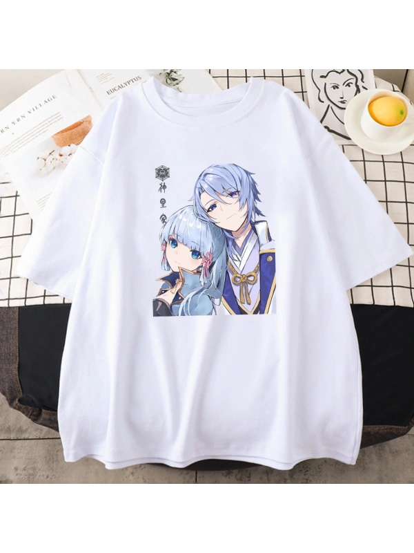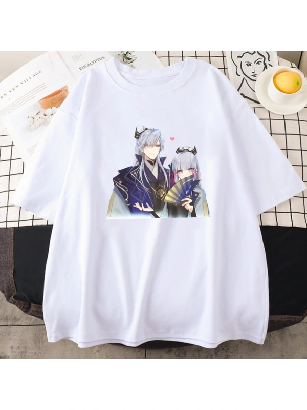 Beyaz Genshin Etki Kamisato Ayato ve Ayakas Anime Baskı Tees ilkbahar Ya