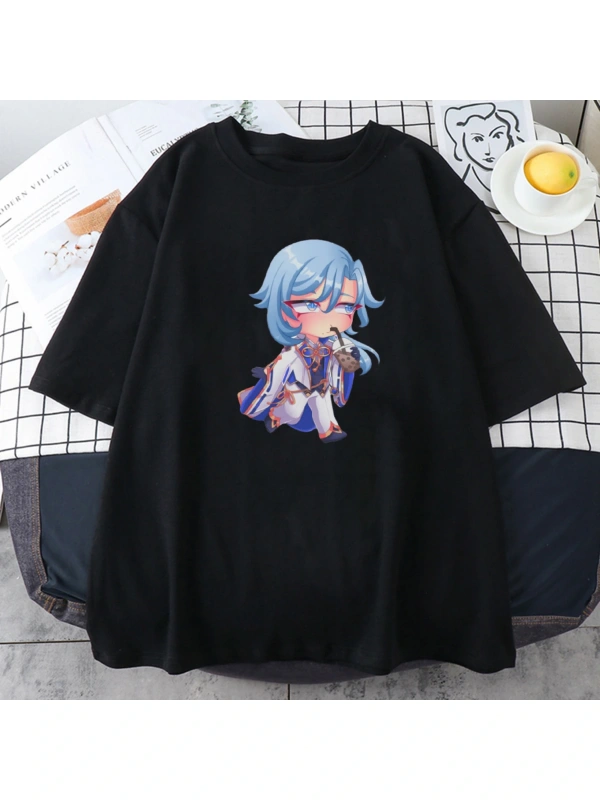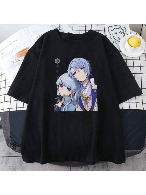 Siyah Genshin Etki Kamisato Ayato ve Ayakas Anime Baskı Tees ilkbahar Ya