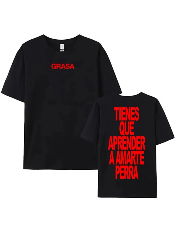 Siyah TIENES QUE APRENDER A AMARTE leri SI TE DUELE CURITA Baskı Nathy Peluso Şarkıcı