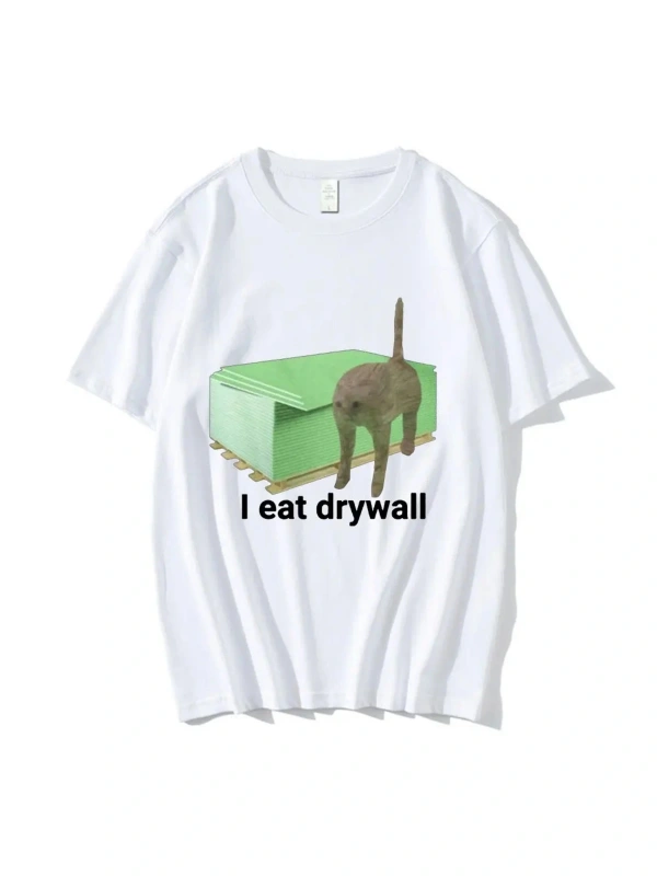Beyaz Komik Meme Kedi Baskı Grafik Vintage B