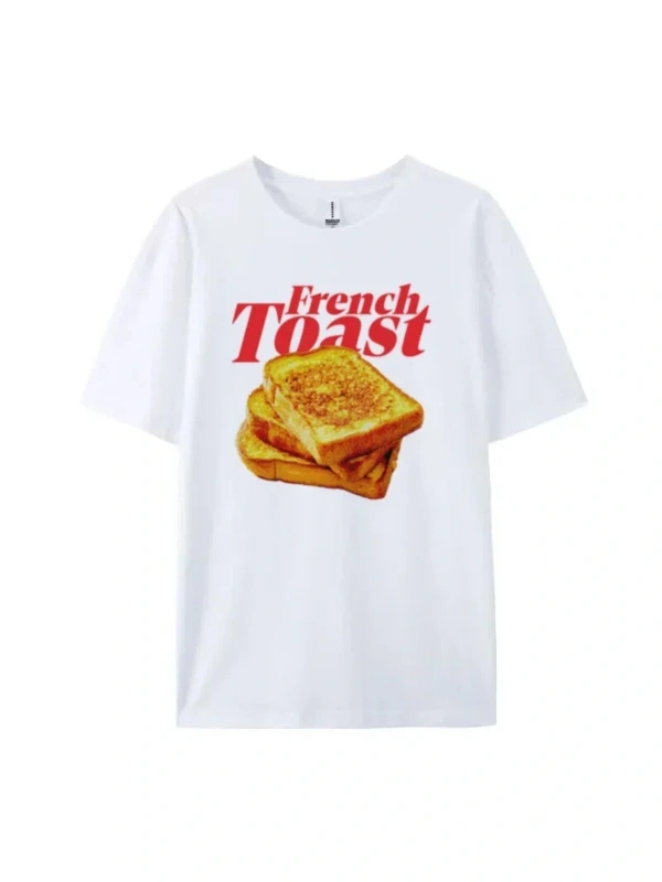 Beyaz Fransız Tost Grafik Tees Retro Kahvaltı Estetik streetwear üstleri Sevimli Foodie Göm