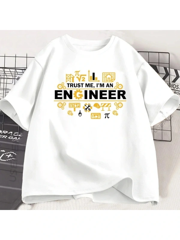 Beyaz Güven Bana Ben Bir Mühendisim Komik Mühendis Mizah Grafik Tee Yuvarlak Boy